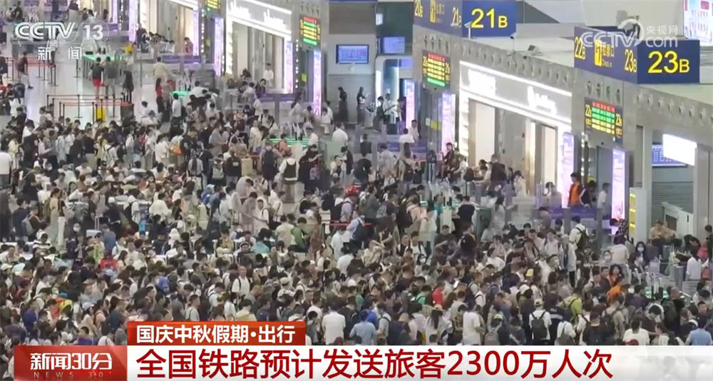 铁路客流呈现强劲增长态势。全国铁路预计发送旅客2300万人次,计划加开旅客列车2106列。9月30日全国铁路发送旅客1846.3万人次,运输安全平稳有序。