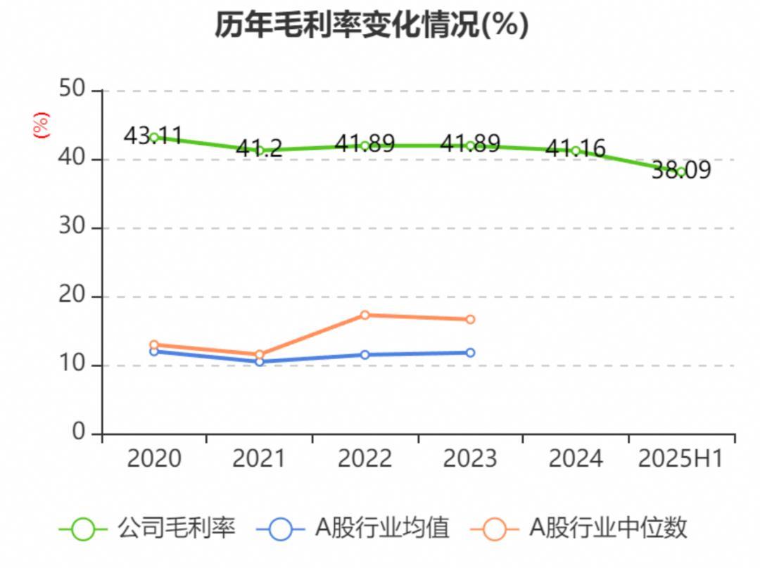 老铺黄金的毛利率与A股行业的毛利率对比,图源:中国证券报·中证网