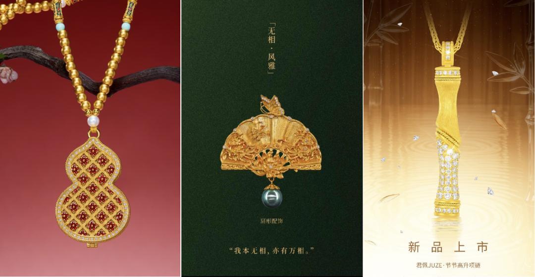 依次为宝兰、琳朝珠宝、君佩黄金的代表产品之一